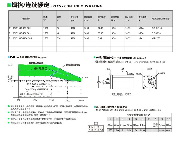 名稱:直流無刷電機110系列110光軸1500W