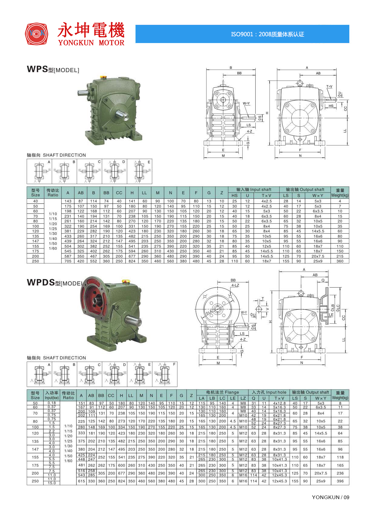 臺灣永坤WPDS蝸輪蝸桿減速機