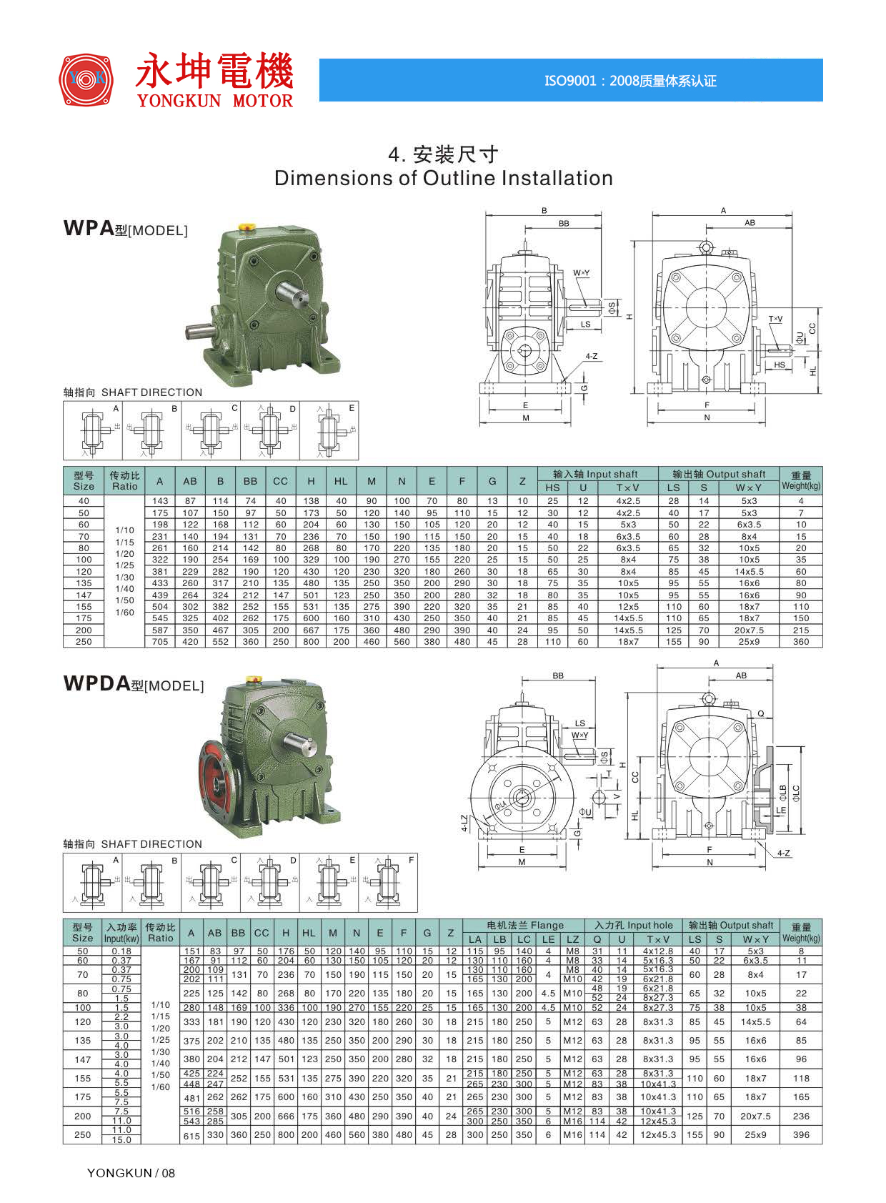 臺(tái)灣永坤WPA蝸輪蝸桿減速機(jī)
