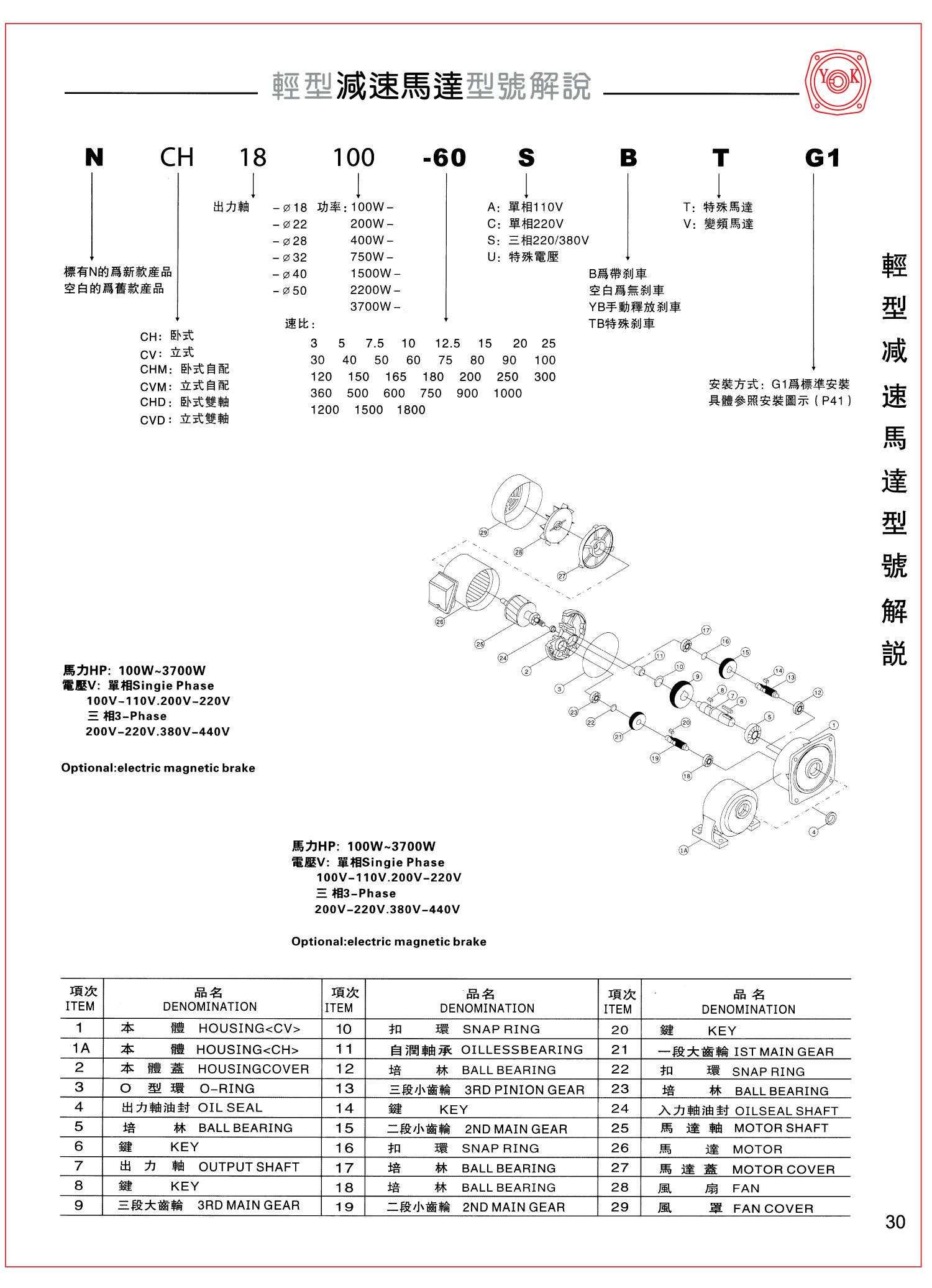 NCH18-100-60SB-V-G1, 這是一個永坤電機完整的電機型號,其中的字符包含的是什么含義呢?下面跟大家一一講解。