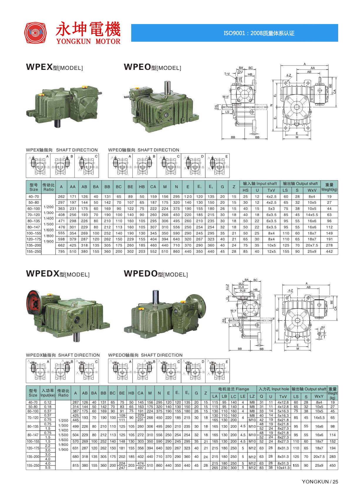 臺(tái)灣永坤WPEO蝸輪蝸桿減速機(jī)